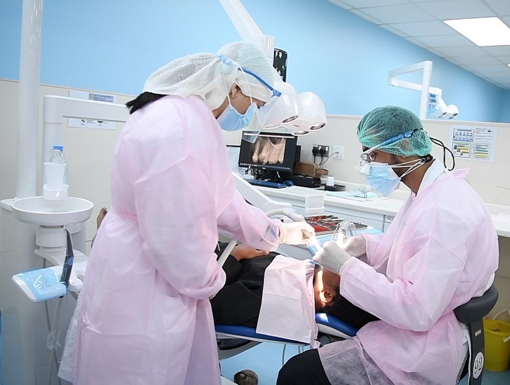 Dr. Fakih indicated that the specialties in the clinics of the College of Dentistry are diverse and include oral and maxillofacial surgery, diagnostic sciences in dentistry, to diagnose and treat various oral lesions and diseases, preventive dental services represented by pediatric dentistry, orthodontics, treatment of gums and tissues surrounding the teeth, conservative treatment, such as preventive dental fillings, Dental pulp and root canals treatment, fixed and removable prosthodontics, and dental implants.