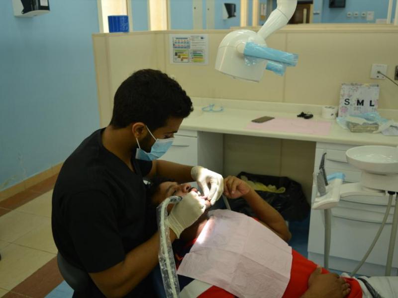 The clinics create an electronic file for each patient, then the references go to the diagnostic clinics to do the necessary tests through clinical examination and radiography to determine the patient’s need and make a comprehensive treatment plan that includes transferring him to the specialized department, and about the procedures for emergency cases. Dr. Fakih stated that emergency treatment is provided directly by doctors, and then emergency cases are transferred to complete treatment in the specialized department within the clinics.