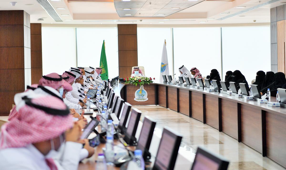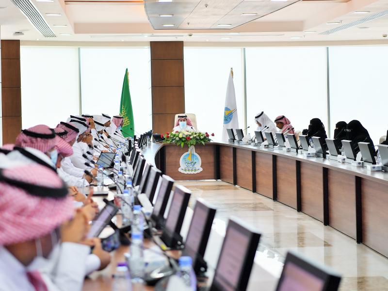 The Jazan University Council, held its third session for the Academic Year 1443 AH, under the chairmanship of His Excellency the President of the University, Prof. Mar’ei bin Hussein Al-Qahtani, in the University Council Hall in the Administrative Tower, this morning. The Council approved the appointment of 32 Saudi faculty members, and the scholarship, continuity and transfer of (36) Teaching assistants and lecturers, both male and female, to pursue master’s and doctoral degrees in different disciplines, granting of master’s degrees to (3) students, recommending the approval of the University’s Annual Report for the academic year 1442 AH, approving a service contract between Jazan University and Al-Madinah International University in Malaysia, and approving some Research and academic topics.