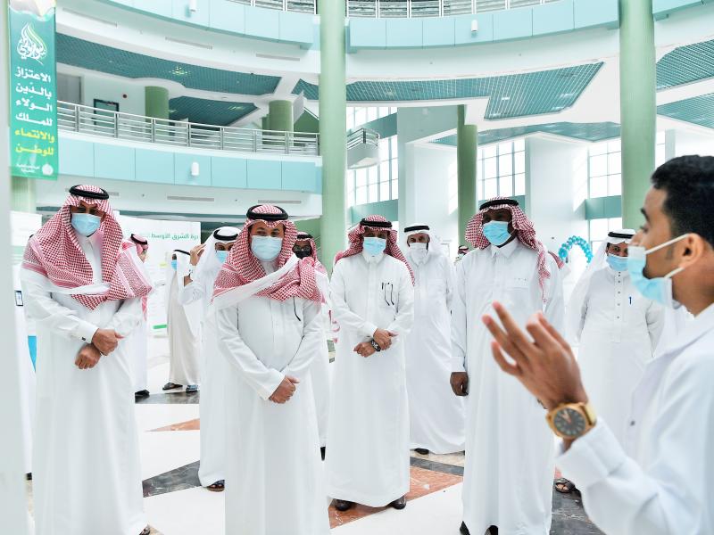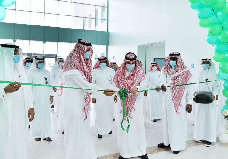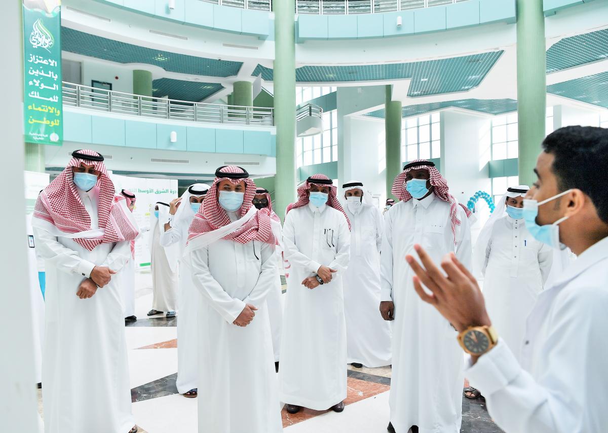 His Excellency the Jazan University President, Prof. Mar’ei bin Hussein Al-Qahtani, inaugurated the scientific symposium and the accompanying exhibition organized by the College of Medicine entitled “Green Saudi Arabia..Safety for our health and quality of our life” within the framework of the initiative of His Highness the Crown Prince “Green Middle East” at the College of Medicine auditorium this morning, in the presence of Vice Presidents and Deans of colleges and deanships.