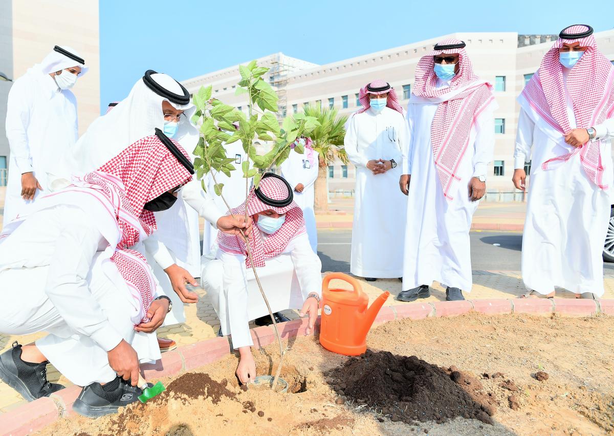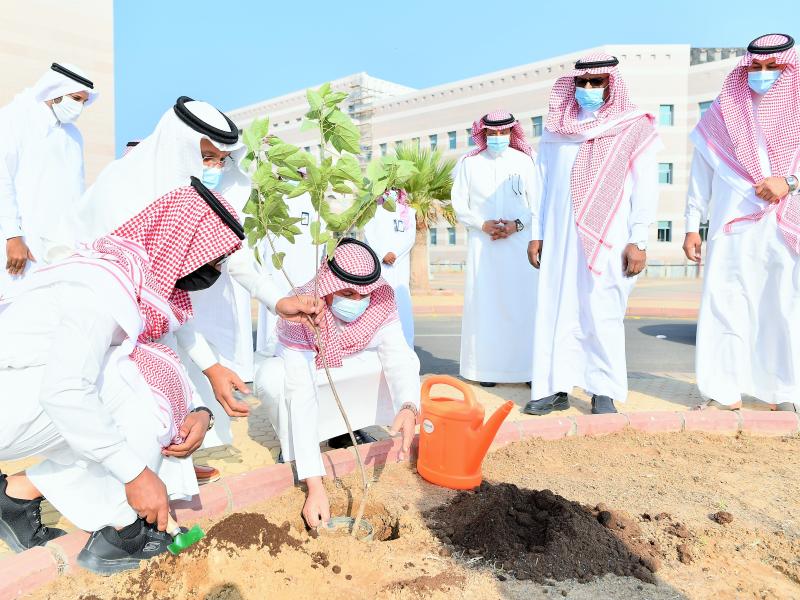 His Excellency the President of the University stressed the global leadership role of the Kingdom of Saudi Arabia, based on the vision of the Crown Prince to lead the region towards green communities that limit drastic and unplanned urbanization and environmental repercussions that may affect the health of the individual and society and the quality of life. Dr. Al-Qahtani praised the contribution of university employees in a number of development projects and research studies for land reclamation and the cultivation of beneficial plants, increasing green areas, and preserving perennial and endangered plants, and have been directed to make more efforts and initiatives in this aspect.