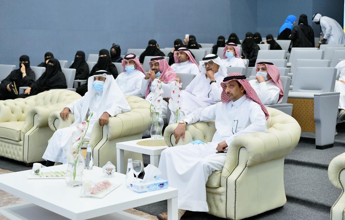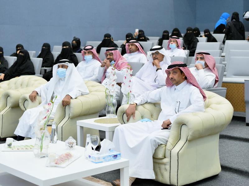 His Excellency the President of Jazan University, Prof. Mar’ei bin Hussein Al-Qahtani, inaugurated the celebration of the International Day of the Arabic Language, which was organized by the College of Arts and Humanities represented in the Department of Arabic Language under the title “Arabic Language and Civilizational Communication”. The event took place at the College of Computer Science and Information Technology auditorium, in the presence of the university’s representatives, faculty members and teaching staff.