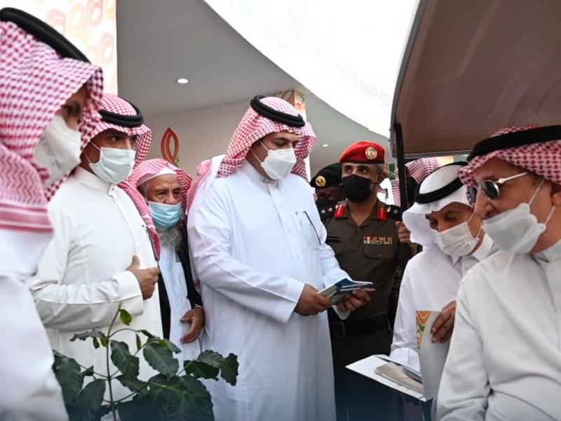 The Governor of the region was briefed on the university’s pavilion and the most prominent environmental and agricultural research carried out by the Environmental Research and Studies Center, and listened to an explanation from Dr. Al-Fayfi, about the center’s role in supporting coffee farmers and developing their capabilities through the implementation of many workshops and training courses that targeted the correct scientific methods for coffee cultivation to achieve the highest quality in production and increase the yield according to scientific standards.
