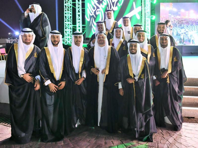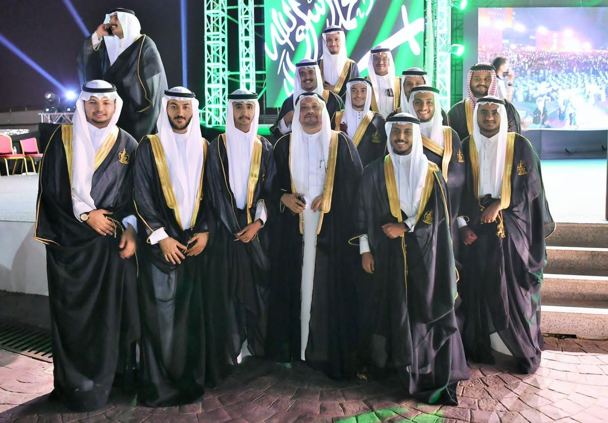 This was followed by the movie announcing the result for the academic year 1443 AH. After that, the graduates chanted the oath behind the Dean of Admission and Registration, Dr. Ahmed Fahki. At the end of the ceremony, a memorial photo was taken of His Highness the Governor of the region with the graduates.