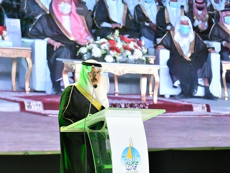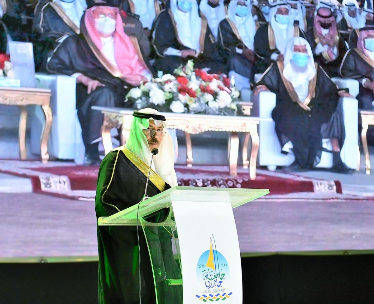 His Royal Highness Prince Muhammad bin Nasser bin Abdulaziz, Governor of Jazan Region, sponsored this evening the University' graduation ceremony of 11,000 students who represent the seventeenth batch, at the open amphitheater in the University City.