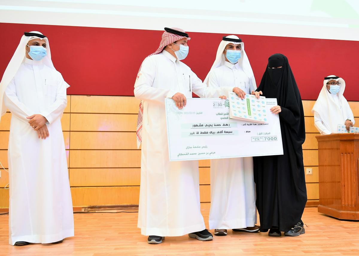 First: Amna Muhammad Harboush - College of Business Administration, Second: Salma Mosleh Al-Kaiki - University College of Farasan, Third: Amani Abdul Rahman Al-Mallah - College of Education.