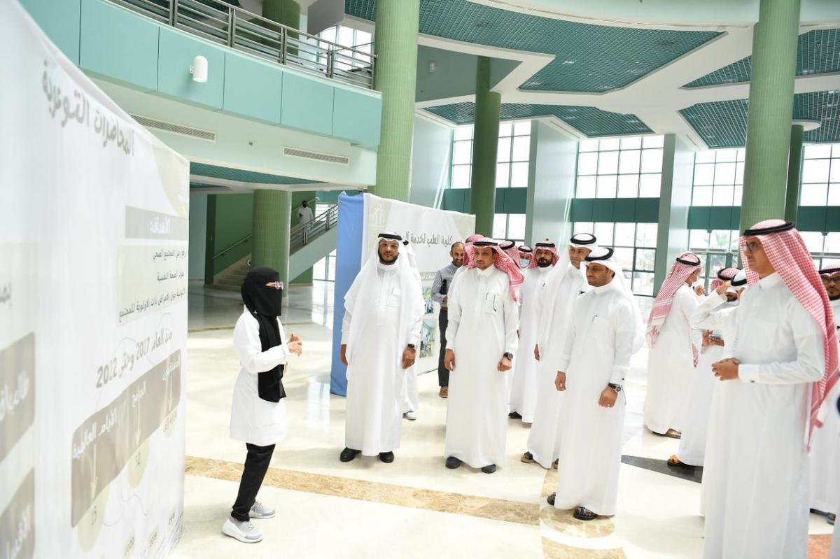 For his part, the Dean of the College of Medicine, Dr. Anwar Makin, expressed his sincere thanks and gratitude to His Excellency the President of the University, Prof. Mar’ei bin Hussein Al-Qahtani, for his support of all initiatives, activities and events conducted by the College of Medicine, stressing that the college has competencies in the academic and student side and people who always strive to do their best.