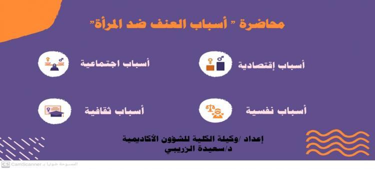 Within the framework of the annual campaign, which is launched on the 25th of November, on the International Day for the Elimination of Violence against Women, the University College of Al-Dayer organized under the auspices of the Dean of the College, Dr. Tanweer Hindi, and under the supervision of the Vice Dean for Academic Affairs and in cooperation with the Community Service Unit, a lecture entitled “The Causes of Violence against Women” presented by The Vice Dean for Academic Affairs, Dr. Saeeda Al-Zaribi, included a number of themes. The lecture began by introducing the International Day for the Elimination of Violence, then spoke about cases of violence against women in the world in its various forms despite the diversity of cultures. Economic, cultural and psychological motives.