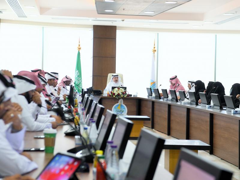 His Excellency the President of Jazan University, Prof. Dr. Mar’ei bin Hussein Al-Qahtani, chaired the University Council meeting in its third session for the academic year 1444 AH this morning in the Administrative Tower, in the presence of Dr. Muhammad bin Abdulaziz Al-Saleh, Secretary-General for Universities Council Affairs, Excellencies the University Vice Presidents, Deans, vice deans of colleges and supporting deanships.