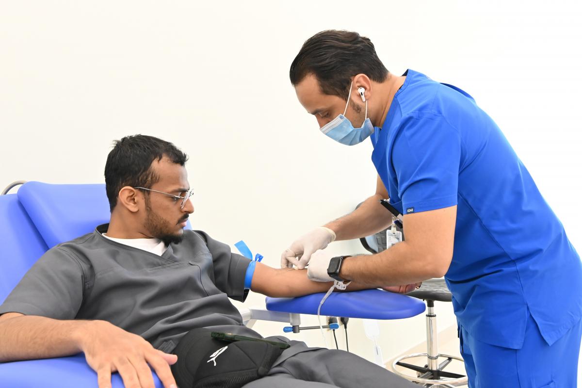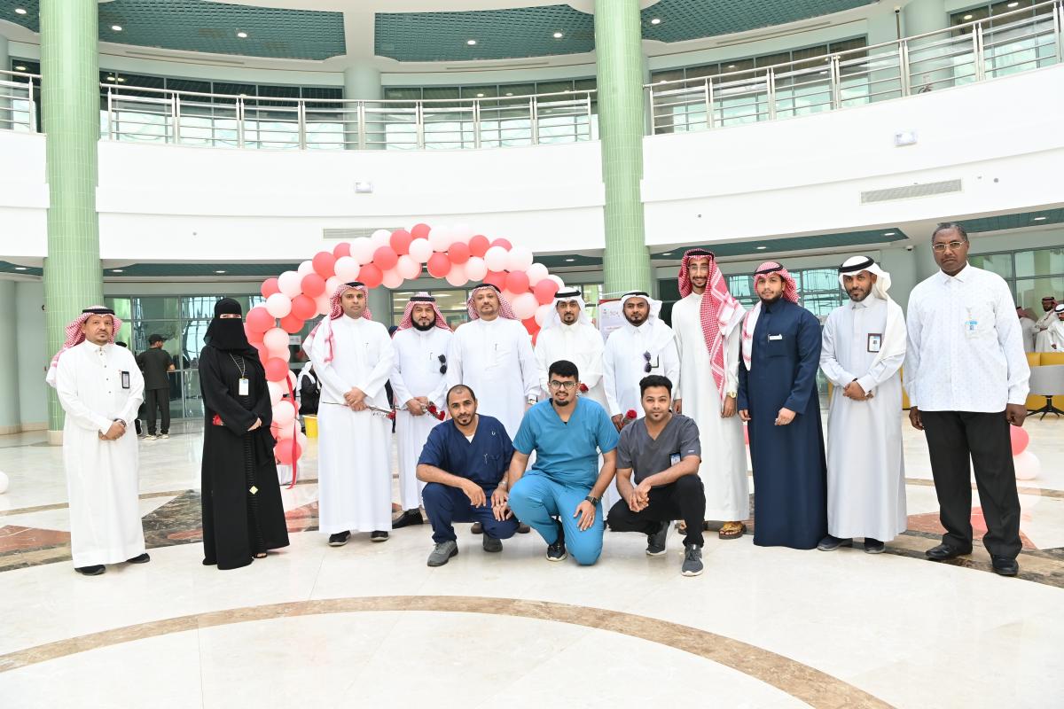 The Acting Vice President for Academic Affairs, Prof. Dr. Muhammad bin Yahya Arishi, inaugurated the blood donation campaign under the slogan "Your blood is life" at the College of Nursing campus this morning