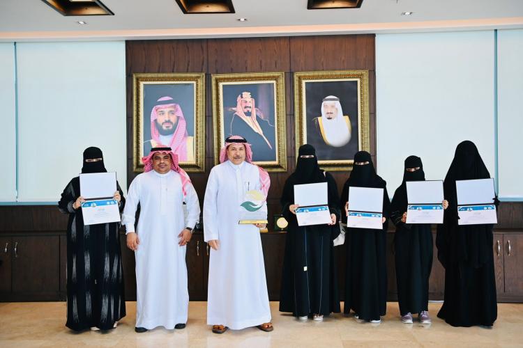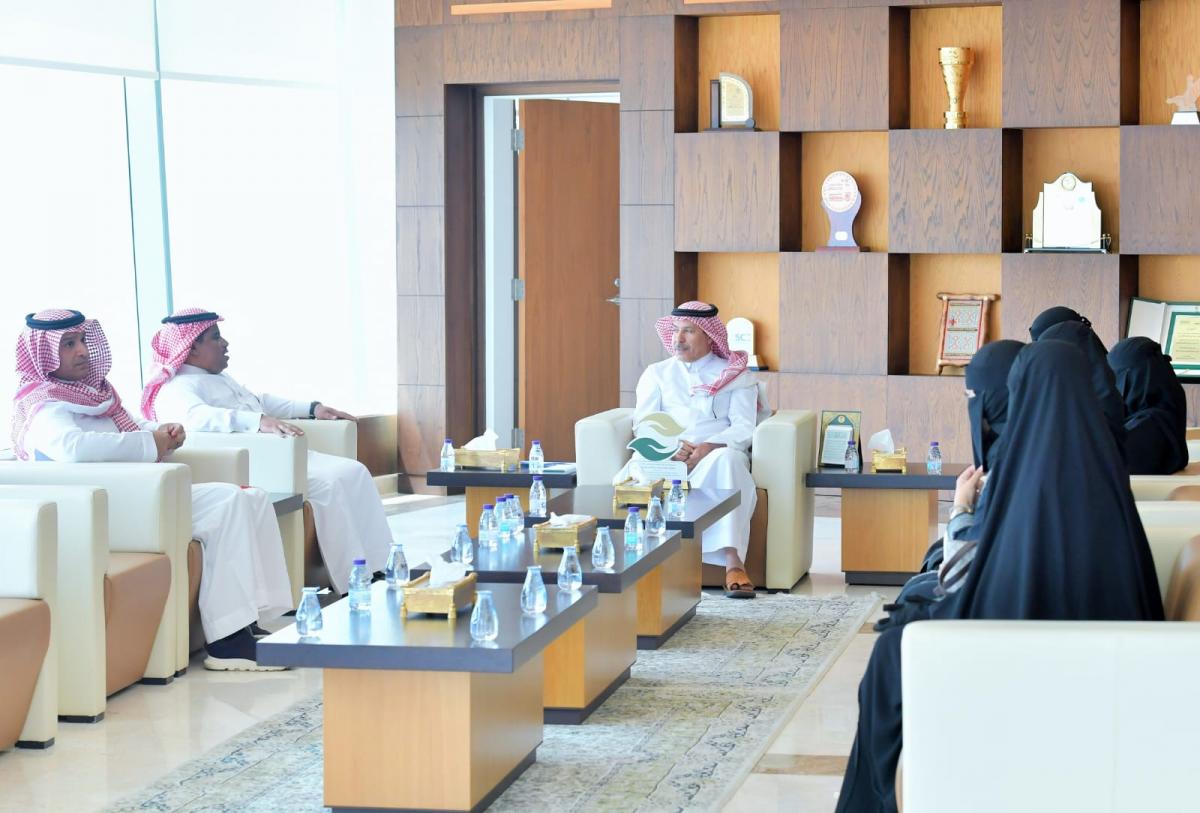 His Excellency received today in his office the research team, in the presence of the Dean of the College of Computer Science and Information Technology, Dr. Musa Khobrani, the team Supervisor, Dr. Awatef Belobaid, and the team members: Ohood Hussein, Asmaa Hafisi, and Samira Shaami.