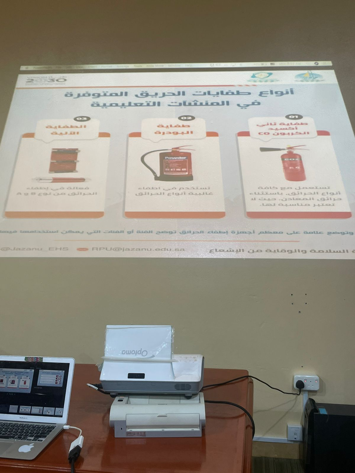 The Safety and Radiation Protection Unit at Al-Darb University College held a workshop entitled (For Our Safety), on Sunday, 03/16/1445 AH, at exactly (10:30 am), in the college library, where it talked about the following: