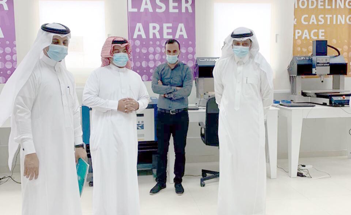 The Vice President for Academic Affairs, Dr. Hassan bin Abdullah Ishaq, and the Vice President for Development and Entrepreneurship, Dr. Nayeif Azyabi, inspected the headquarters of the Center for Innovation and Entrepreneurship, and they were received by the Supervisor of the Center, Dr. Nayef Mazkour.