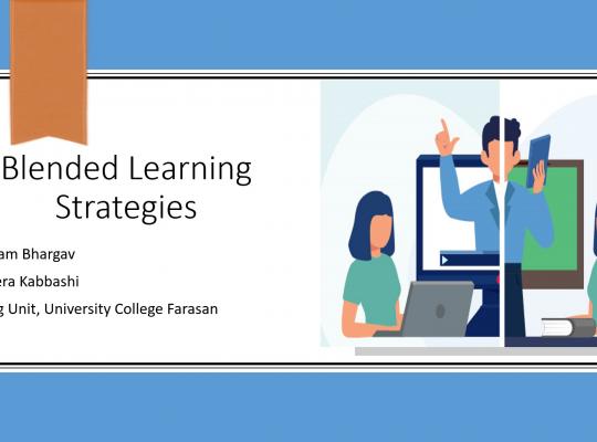 Workshop on Blended Learning Strategies The University College of Farasan, represented by the Learning Resources and E-Learning Unit, under the auspices of the Dean of the College and the supervision of the Vice Dean for Academic Affairs, implemented